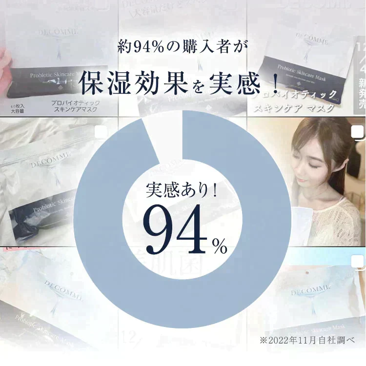 「美肌菌」が喜ぶこだわりの発酵成分を配合したDECOMME(デコム)だけのオリジナル美容液がたっぷり456mLも入った贅沢シートマスクです。
