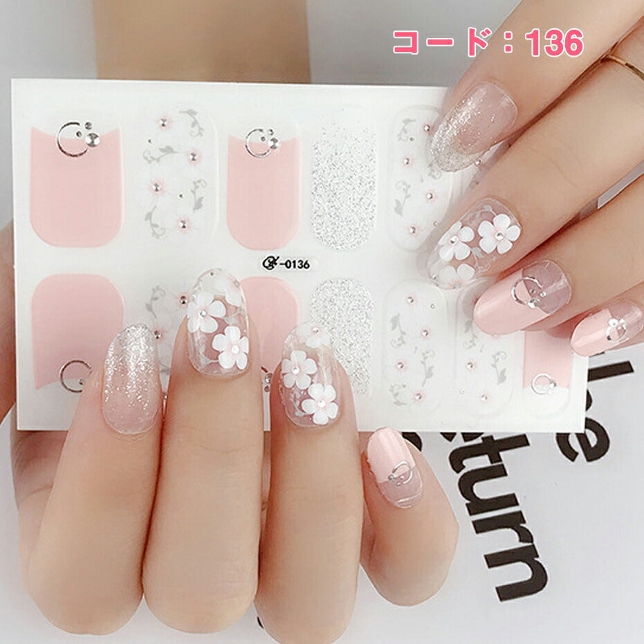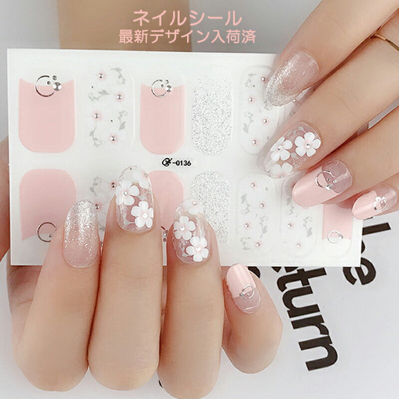 ネイルシール ハンド用 ピンク系 ホワイト クリア キラキラ お洒落 大人しい 淑女 韓国風 最新作 3D 全7色選べる 貼るだけ 花 しま ストーン柄 手指爪用