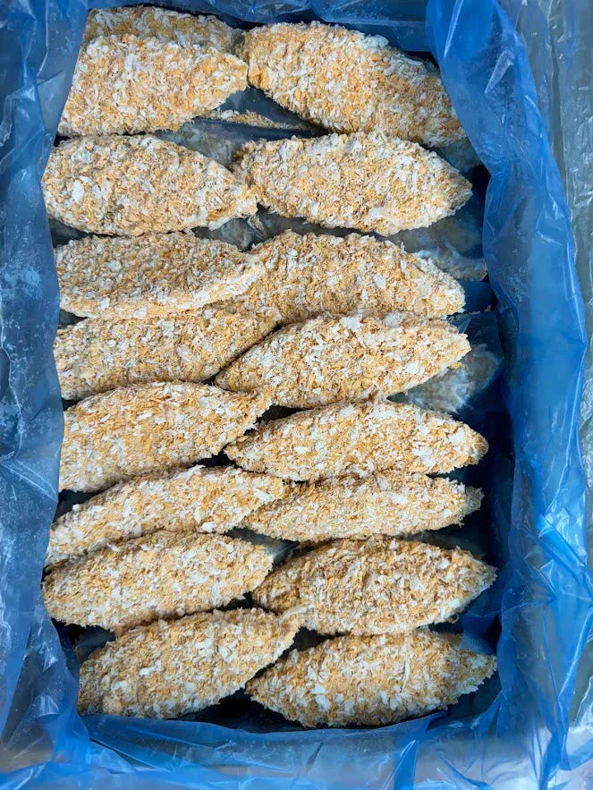 原材料:鱈(オランダ産)、衣(パン粉、小麦粉、澱粉、食塩)/調味料(アミノ酸)、増粘剤(グァーガム)、乳化剤、着色料(パプリカ色素)、(一部に小麦・大豆を含む)