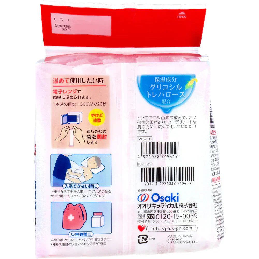 オオサキメディカル プラスハート からだふきぬれタオル ノンアルコール 弱酸性 無着色 無香料 おしぼりサイズ 個包装 1枚 30個入り X4パック