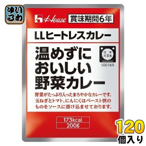 ハウス LLヒートレスカレー 温めずにおいしい野菜カレー 200g 120個 (30個入×4 まとめ買い) カレー レトルト 災害 保管 非常用 長期保存 保存