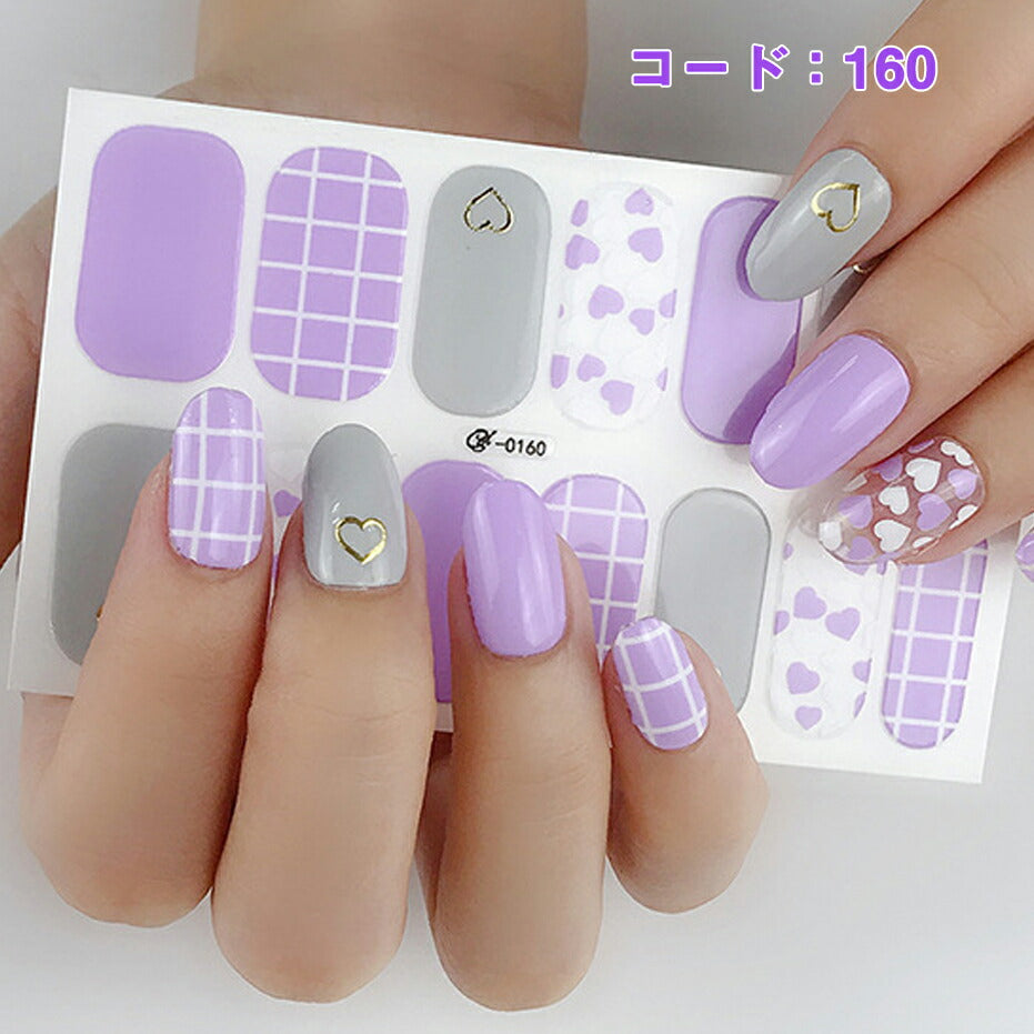 ネイルシール ハンド用 パープル系 紫 グレー ホワイト クリア キラキラ お洒落 大人しい 淑女 韓国風 最新作 3D 貼るだけ 花 しま ストーン柄 手指爪用