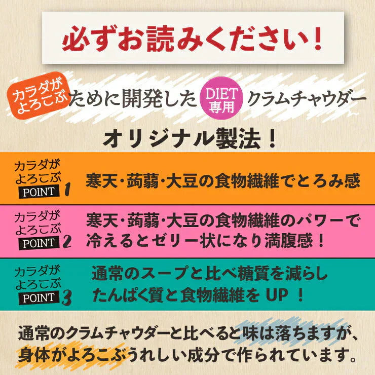DIETクラムチャウダー12食入り!豆乳仕立て 減塩タイプ!