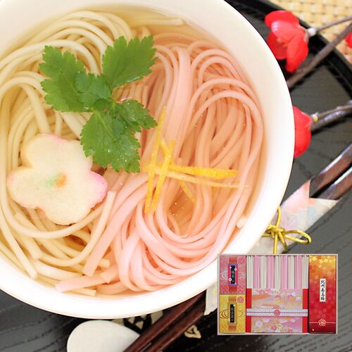 優雅 ~紅白うどんの詰合せ~ (讃岐うどん5束、梅うどん4束、純金茶、紀州南高梅)