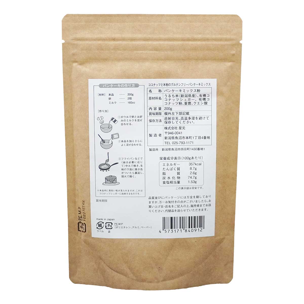 小麦粉 白砂糖不使用 低GIのココナッツシュガーと食物繊維豊富なココナッツ粉を使った、ココナツの芳醇な香りと甘みが広がるもっちり美味しいパンケーキミックス粉です。