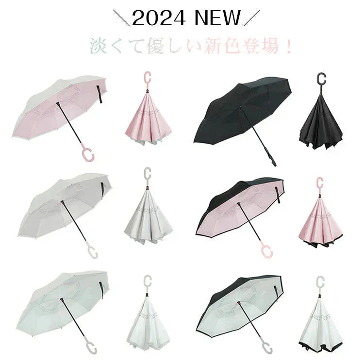 \2024新色追加/「ペールグレー×ブラック」 傘 逆さ傘 ボタン式 日傘 晴雨兼用 折り畳み傘 プレゼント 遮光 梅雨 雨 レディース メンズ 逆傘 日焼け UVカット 雨傘 紫外線 熱中症 【プチプラ特集】