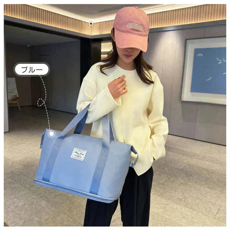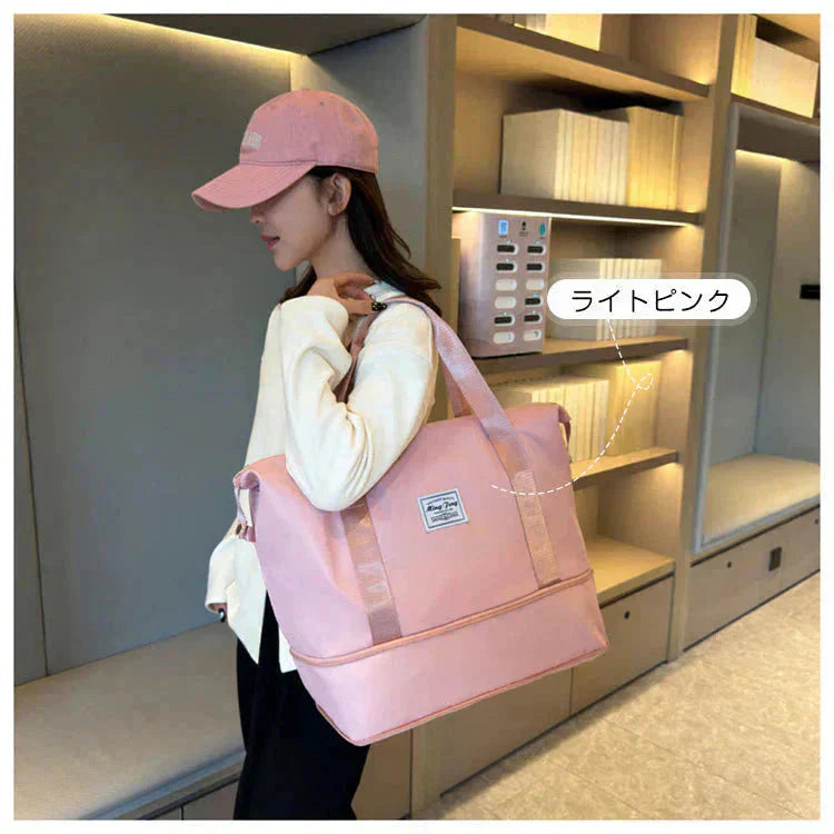 キャリーオンバッグ 「ライトパープル」 旅行バック キャリーバッグ 2way 多機能 大きさ調節 4輪 横押し 折りたたみ 軽量 軽い 大容量 機内持ち込み ボストンバッグ おしゃれ 防水 撥水加工 出張