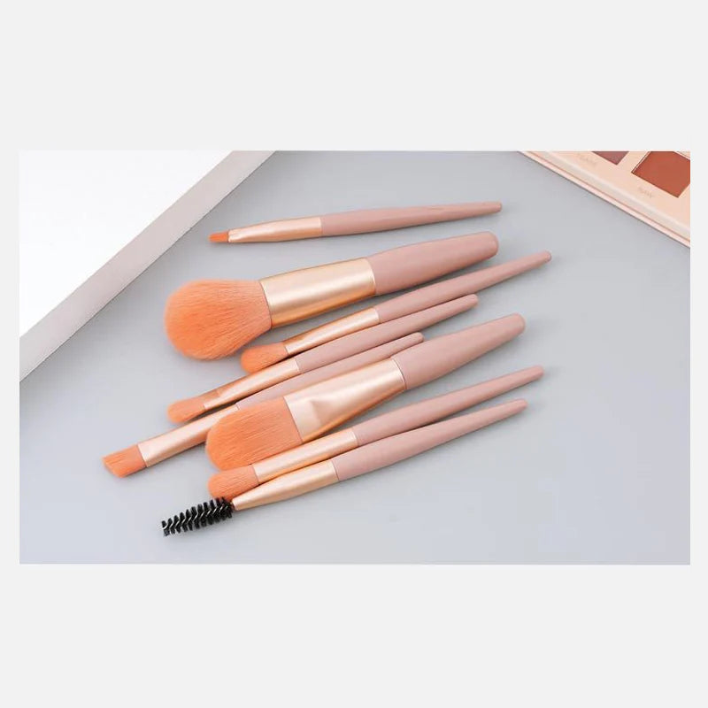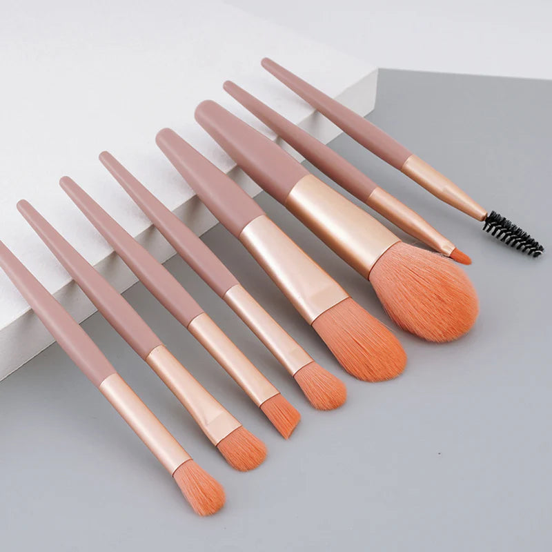 メイクブラシ 8本セット オレンジベージュ色 化粧ブラシ ファンデーション コンシーラー フェイスパウダー チーク リップ アイシャドウチップ 眉毛 ブラシ