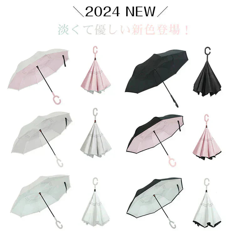 \2024新色追加/「ブラック×ブラック」 傘 逆さ傘 ボタン式 日傘 晴雨兼用 折り畳み傘 プレゼント 遮光 梅雨 雨 レディース メンズ 逆傘 日焼け UVカット 雨傘 紫外線 熱中症