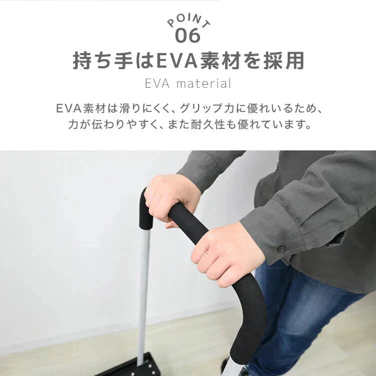 持ち手はEVA素材を採用、グリップ力・耐久性に優れます。