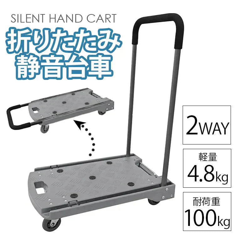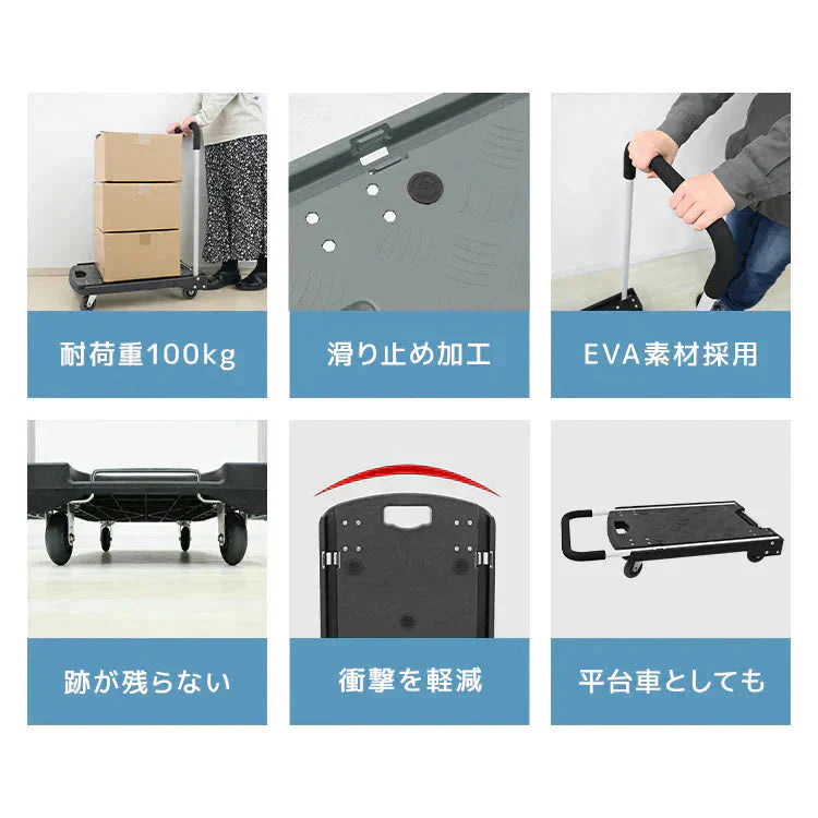 【グレー】台車 折りたたみ 軽量 コンパクト 静音 小型 おしゃれ 女性 キャリーカート 運搬 カート 折り畳み 耐荷重 100kg 折りたたみ台車 スチール台車 手押し台車 運搬車 業務用 家庭用 会社 運送 手押し 折り畳み荷台車 店舗 書類 荷台