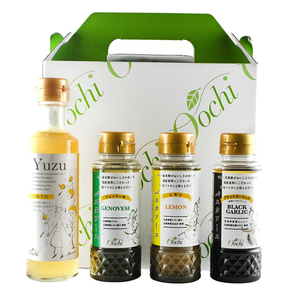 ■規格:のむ柚子酢200ml、レモンパスタソース170ml、ジェノベーゼパスタソース170ml、ブラックガーリックパスタソース170ml×各1