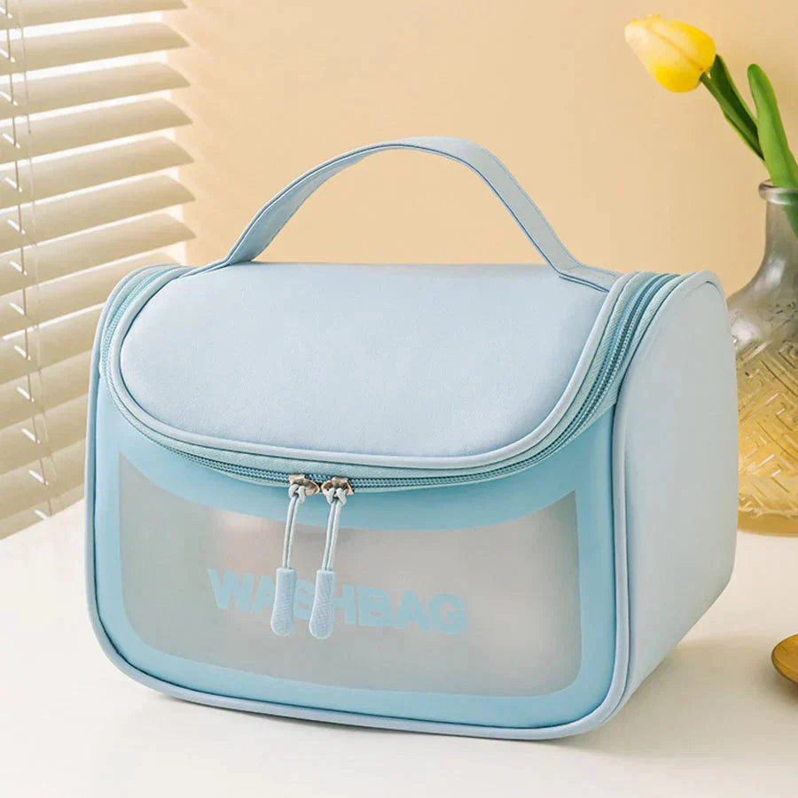 化粧ポーチ(ブルー) トラベルポーチ メイクポーチ コスメ バッグ 収納 小物 大容量 メイクバッグ 花柄 可愛い レディース おしゃれ 出張 旅行 修学旅行 卒業旅行