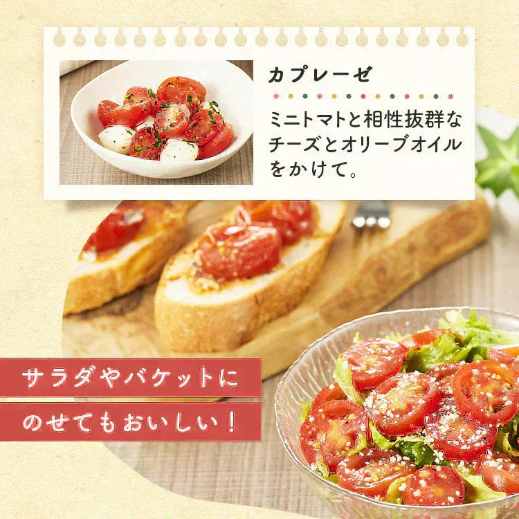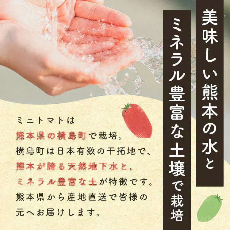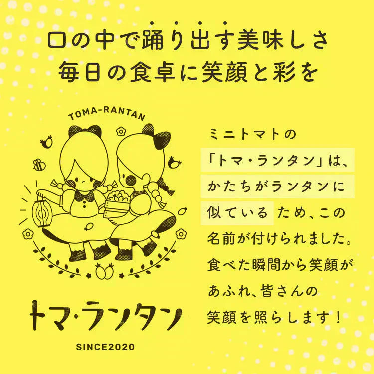 「喜びと幸せを、食卓へ」 熊本県横島町でミニトマトを育てる「ベジライズ」です。 ミネラル豊富な干拓地の土と、地下から湧き出る天然水の恵みを活かし、化学肥料に頼りすぎず、有機肥料を中心に丁寧に栽培しています。 私たちは、月の満ち欠けや潮汐など自然のリズムに合わせて作業時期を見極める“月のリズム栽培”を取り入れています。 自然の流れに寄り添うことで、樹のバランスが整い、味わい深く実の詰まったミニトマトに育ちます。 完熟した実だけを、その日のうちに収穫・出荷。 噛むほどに甘みと旨味が広がり、ほどよい酸味が後味を引き締めます。 甘み・旨み・酸味のバランスが絶妙で、「気づいたら何個でも食べちゃう!」と人気です。 「お弁当に入れたら子どもが真っ先に食べた!」 「サラダがごちそうになった!」 そんな声が、私たちの一番の励みです。 ご家庭用にも、ちょっとした贈り物にもぴったり。 今日の食卓に“トマランタンのしあわせ”をどうぞ。