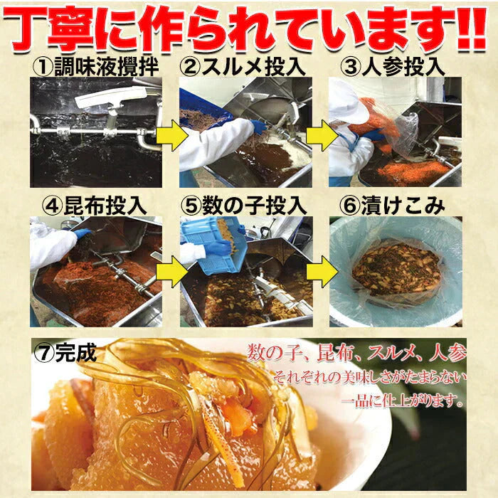 数の子、昆布、スルメの旨味がたまらない珍味です。