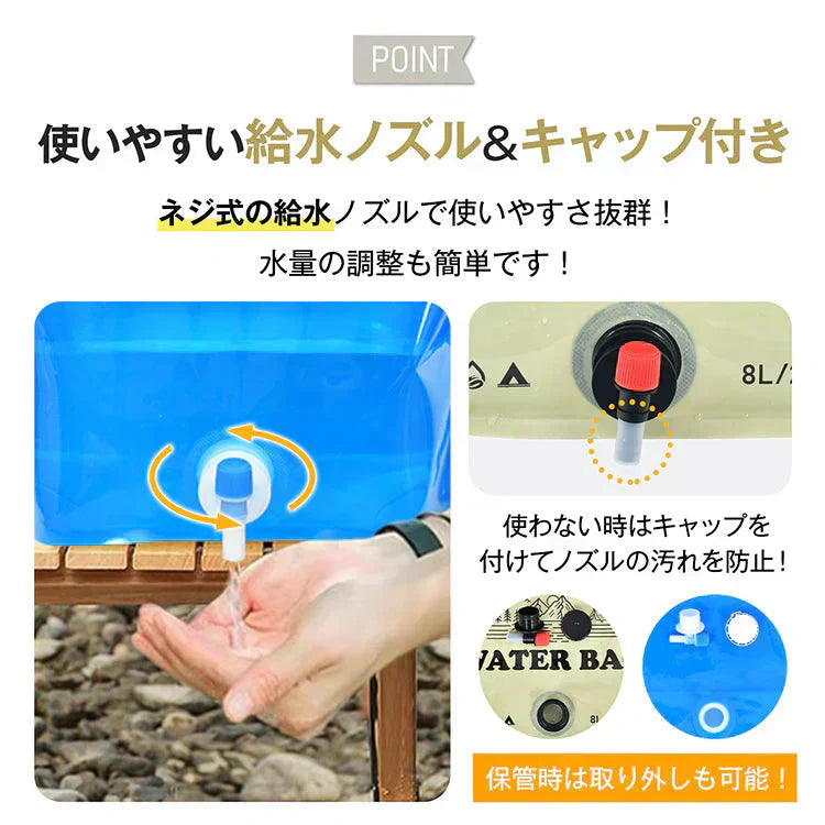 ウォーターバッグ 「8L/ベージュ」 給水袋 給水タンク 大容量 8L携帯用 折りたたみ アウトドア ウォータータンク 給水ノズル付き 避難グッズ 非常用 貯水タンク
