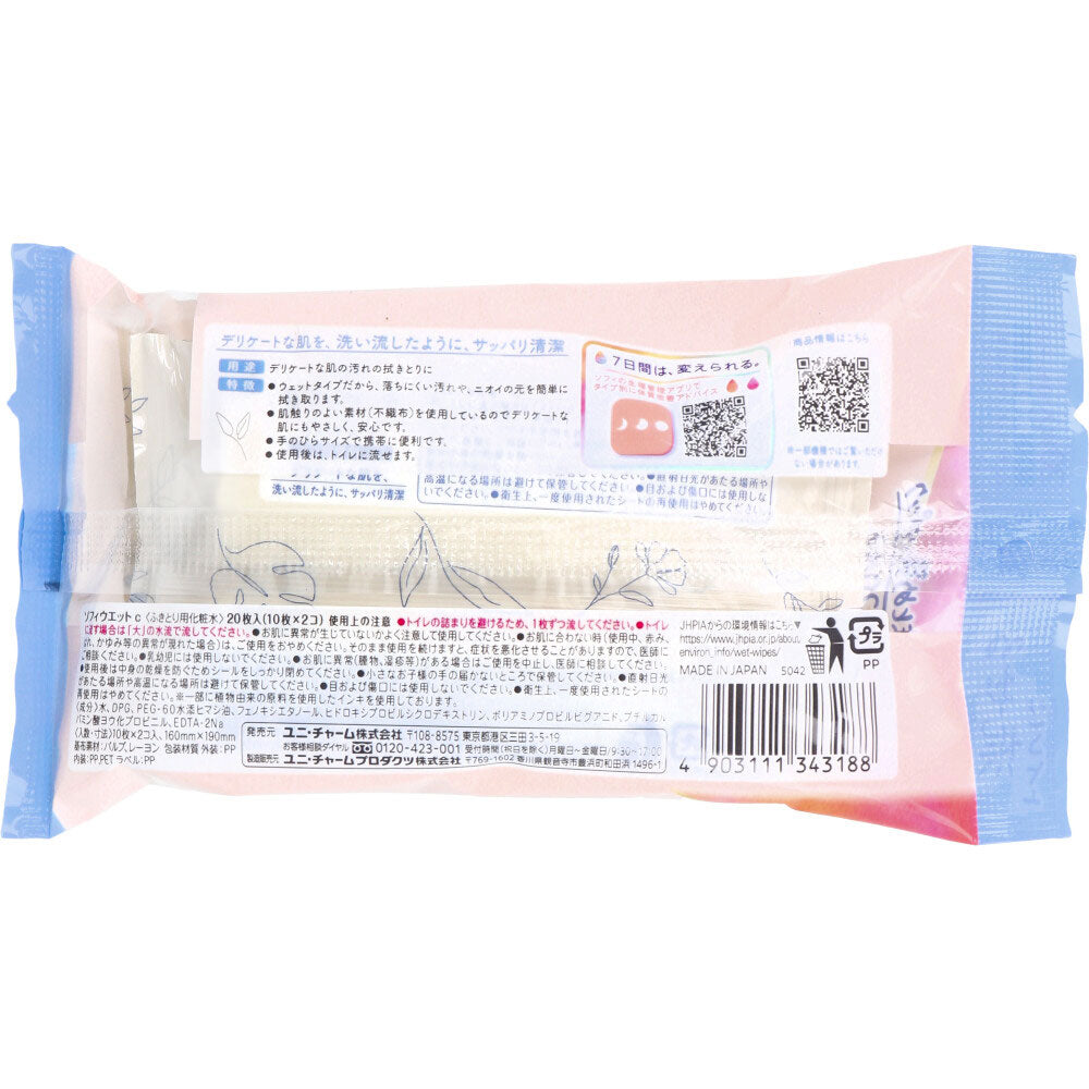 ユニ・チャーム ソフィ トイレに流せるデリケートウェットシート ノンアルコール 無香料 10枚 2個入り X6パック