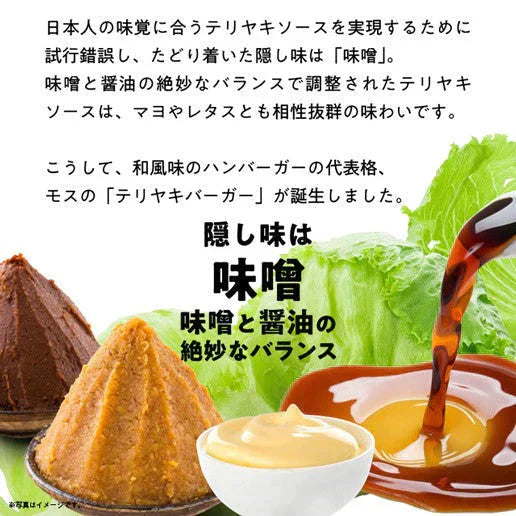 奥深い味わいのモスバーガー秘伝のテリヤキソースとマヨの酸味がマッチしたテリヤキバーガーの味わいに近づくよう、隠し味に味噌を加え、コクのある味わいに仕上げました。