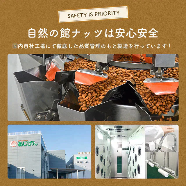 ご注意:使用しているアーモンドは粒の形が長く扁平な外観が特徴でございます。味が淡白で食感が柔らかいため、湿気たように感じる場合がございますが、アーモンドの品種によるもので品質には問題ございませんので、ご安心いただけますと幸いです。