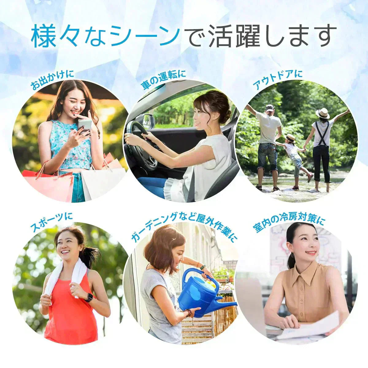 【様々なシーンで活躍します】・お出かけに・車の運転に・アウトドアに・スポーツに・ガーデニングなど屋外作業に・室内の冷房対策に