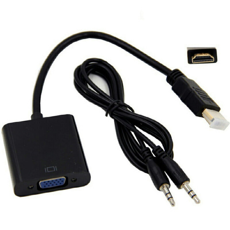 HDMIオスtoVGA+AUXメス 3.5mm音声機能付 オーディオジャック付き 変換アダプター 黒 D-sub 15ピン 単方向 変換ケーブル V1.4 1080P