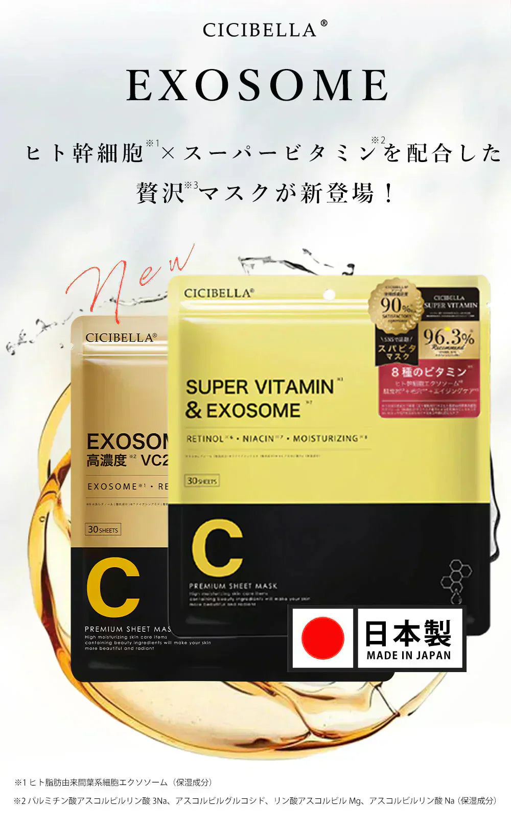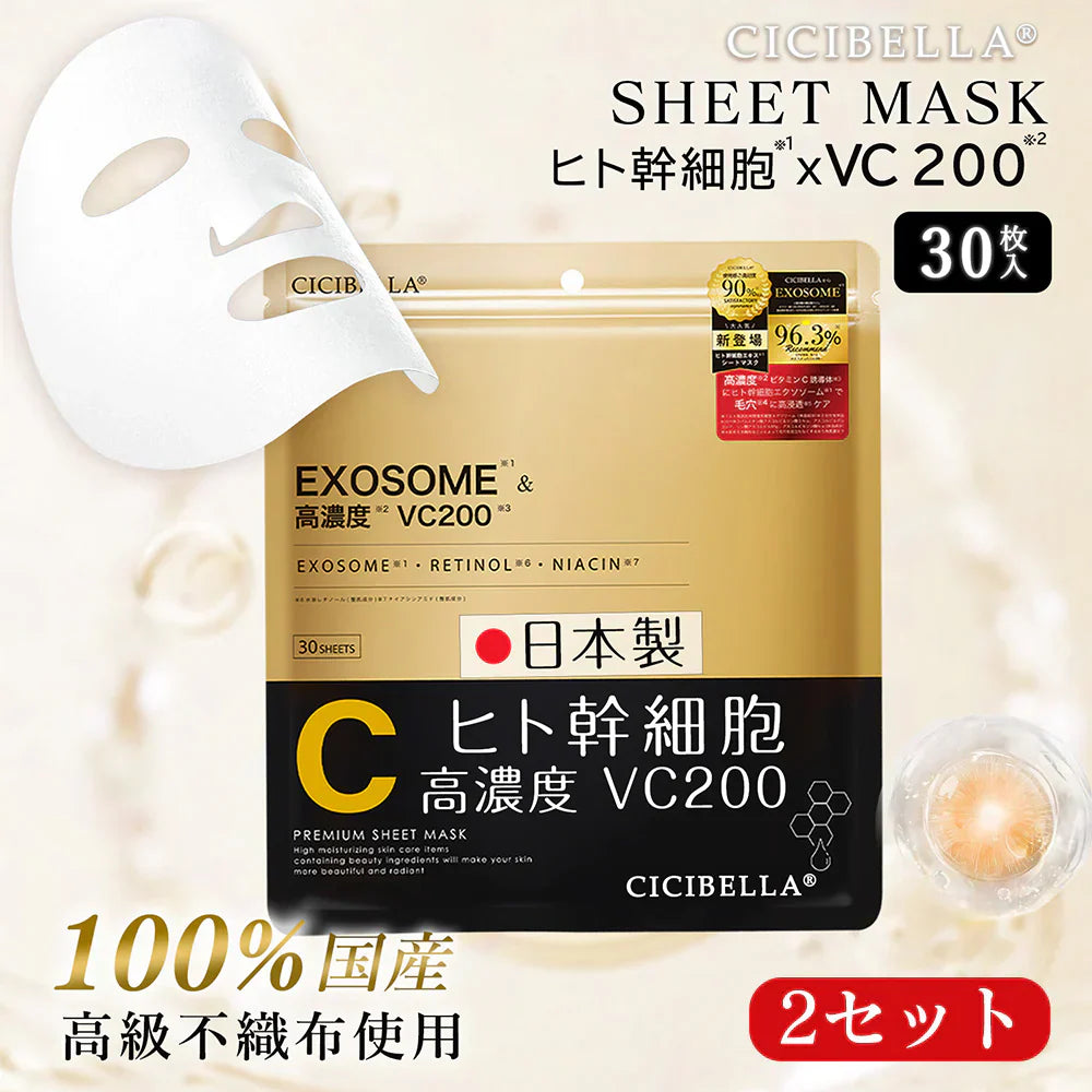 セール中!【肌が潤い!夜用2パック60枚入り】【LDK3月号A評価受賞】高評価 cicibella ヒト幹細胞 シートマスク 大容量 高保湿 VC200 ヒト幹細胞 フェイスパック フェイスマスク パック 乾燥 毛穴 美肌の秘密 顔パック ツヤ トラブル肌 水分 エクソソーム EXOSOME 高密着 キメ スキンケア レチノール