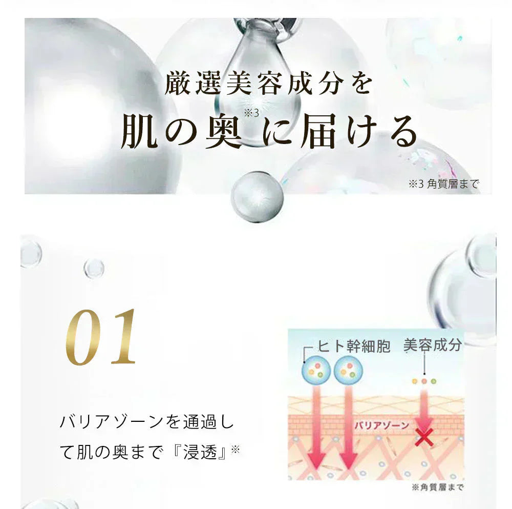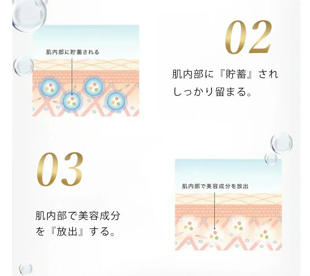 3.肌に残った美容液を優しく押し込むように肌になじませてください。肌のうるおいを保つために毎日のご利用をおススメします。