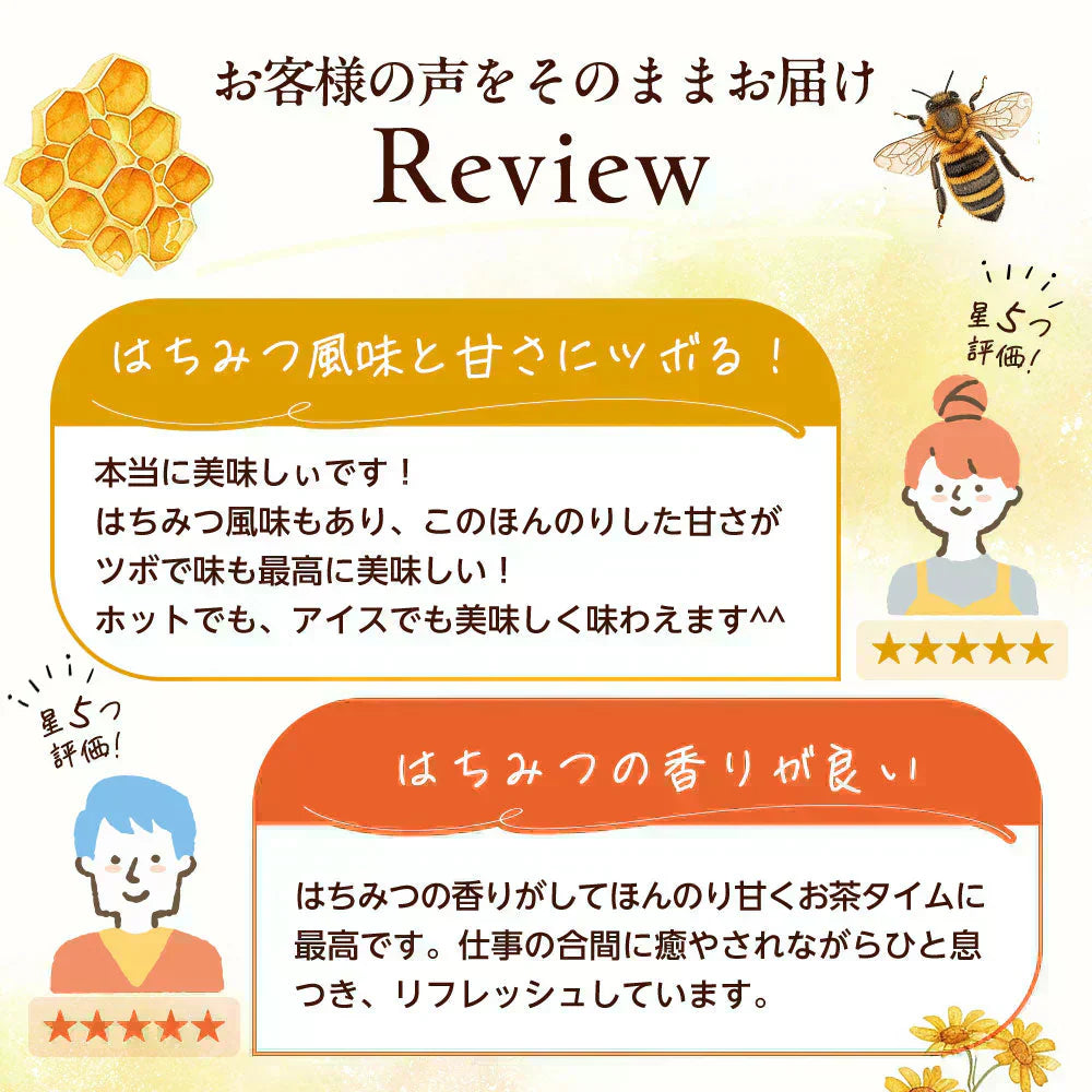 全原材料(原産国):紅茶(ケニア)、ステビア(インド)、はちみつパウダー(はちみつ(国内製造)、デキストリン)/香料