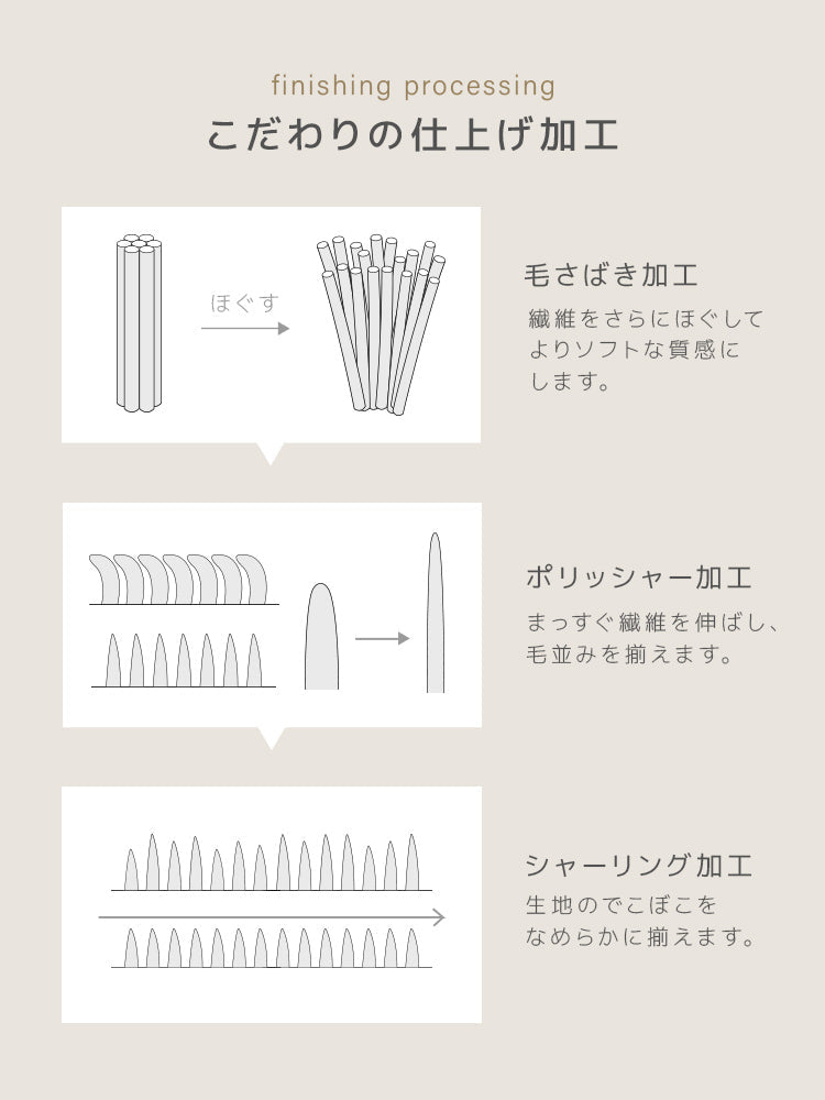 ・製品の特性上、ご使用中や洗濯中に毛羽立つことががりますが、機能的に問題はございません。