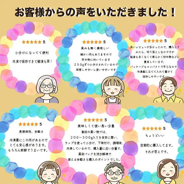 脂身も美味しく召し上がっていただきたいため、脂身ばかりを除いた切り落としではありません。