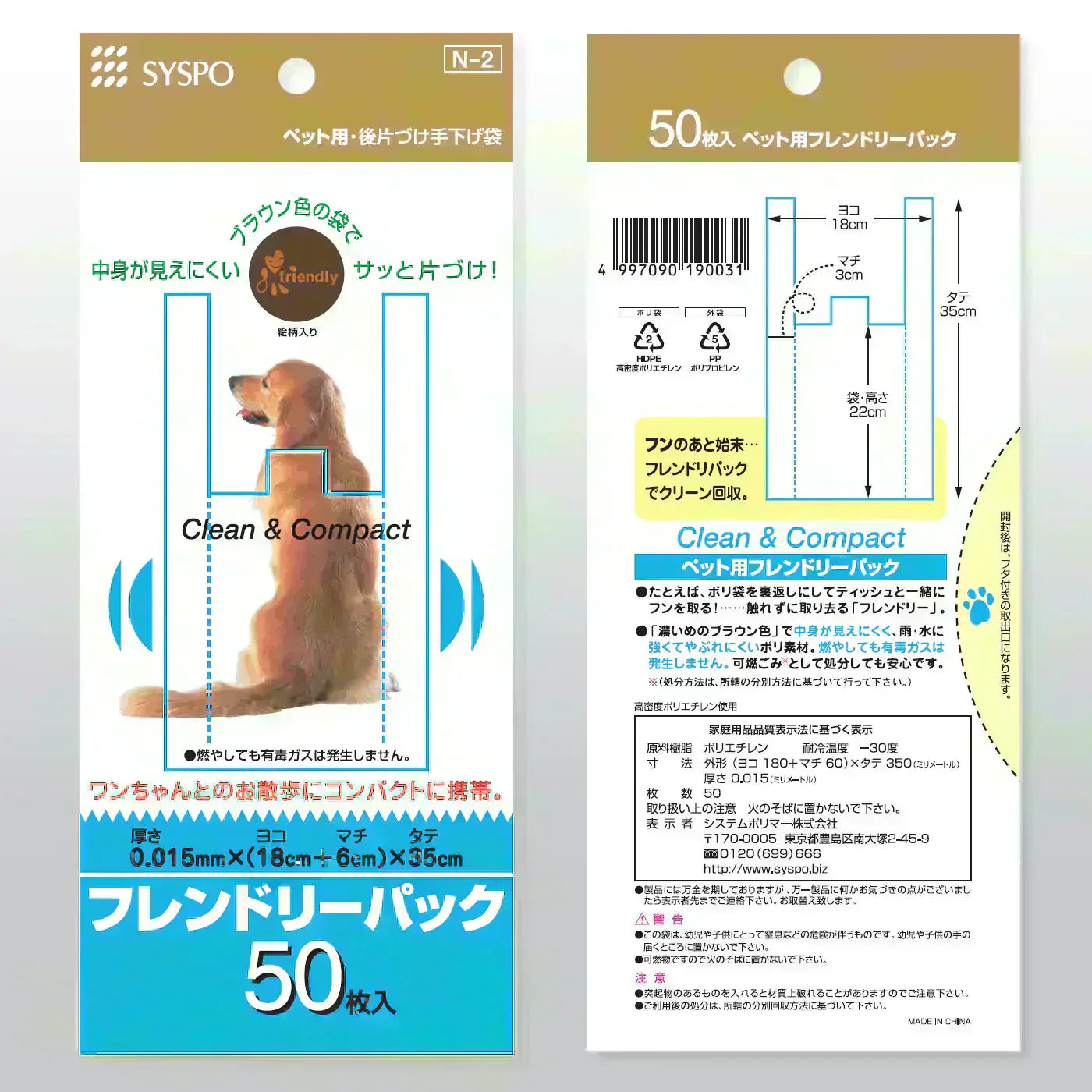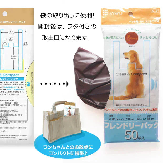 【中身が見えにくい】フレンドリーパック ペット用 糞(フン)後片付け 手さげ袋 50枚入 かわいい!イラスト付き【カウシェファーム収穫対象商品】