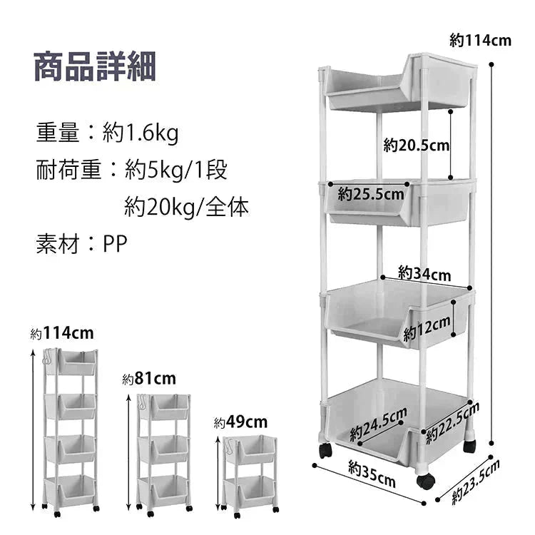 キッチンワゴン 「ベージュ」 収納棚 収納ワゴン 収納ラック 本棚 おしゃれ キャスター付き 組立簡単 収納カート 小物 台所 洗面所 軽量 組替可能 4段