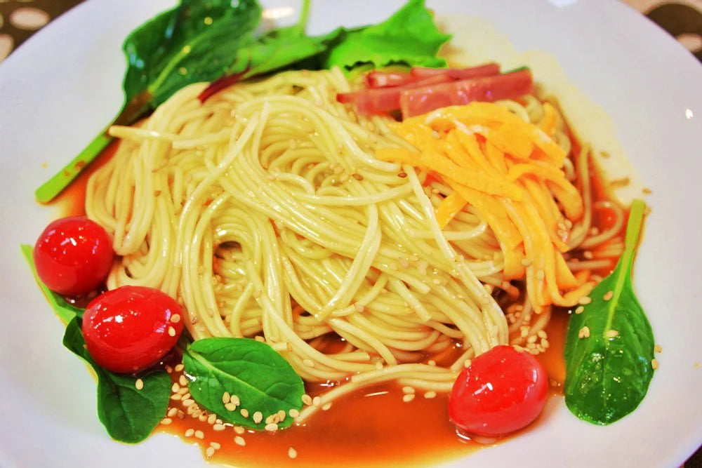 「冷やし中華(胡麻だれ)」…すりごまの風味が広がる!さっぱりの冷やし中華スープです♪(325kcal)