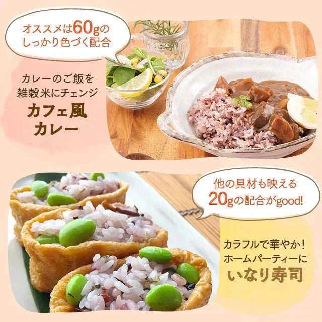 お客様のご意見が究極の雑穀としてついに完成しました。健康主食をテーマにしたマンナン入りの雑穀米です。栄養豊富、彩りも美味しさも究極の雑穀をぜひお試しください。