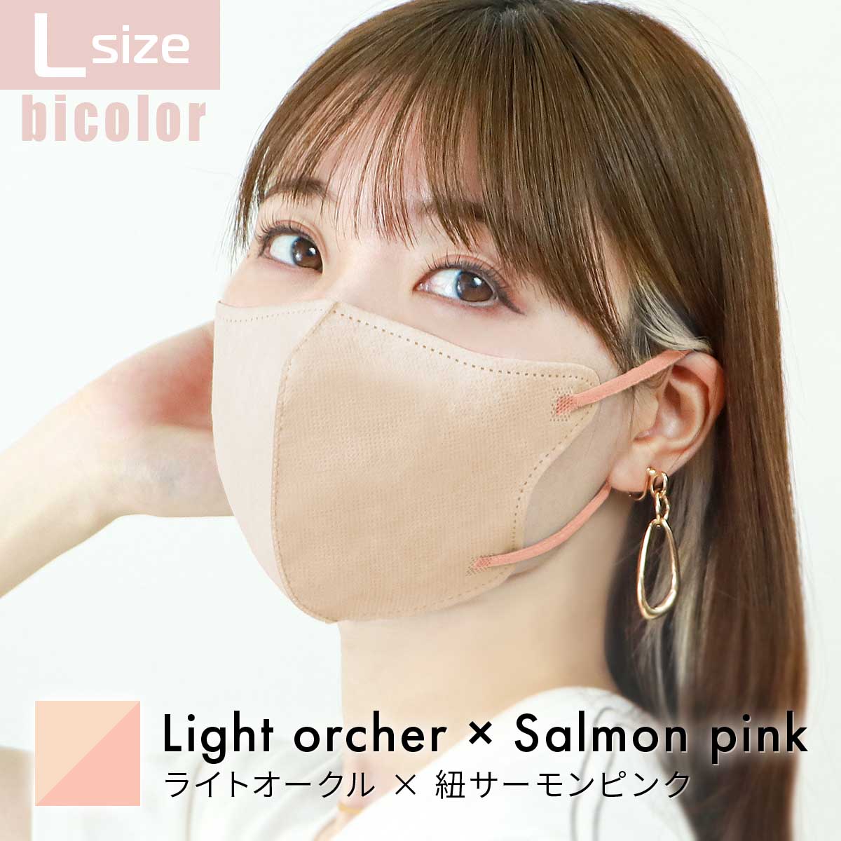 【Lサイズ】【ライトオークル×サーモンピンク】立体マスク バイカラー 両面 同色 立体 不織布 カラー 血色 3Dマスク 3D マスク 2D 2Dマスク 美人 小顔 使い捨て カラーマスク 美 シルエット ジュエルフラップマスク 3Dデイリースタイル Jewel Flap Mask 公式 WEIMALL bwm3d5【カウシェファーム収穫対象商品】