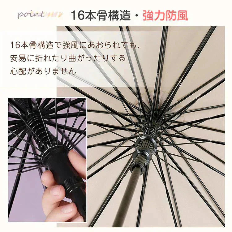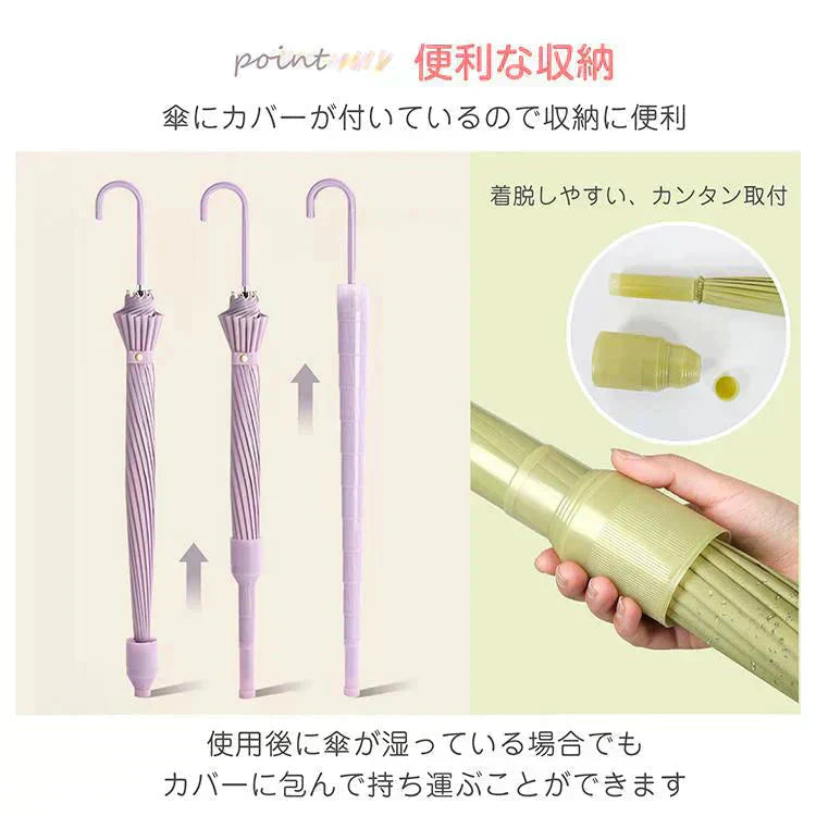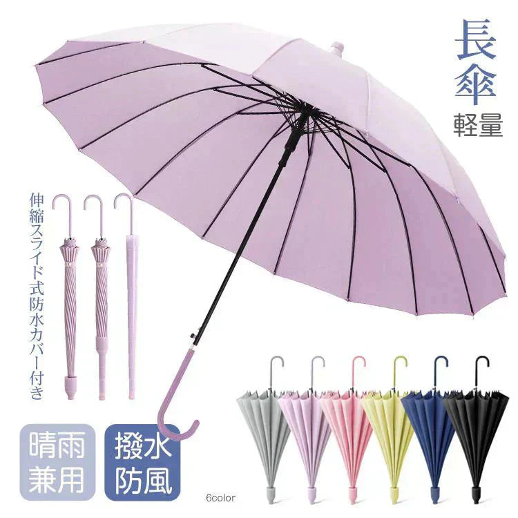 スライドケース長傘 「グリーン」 晴雨両用 16本骨 撥水カバー付き 耐強風 撥水 梅雨対策 メンズ レディース おしゃれ ジャンプ 便利 機能 車 電車 プレゼント