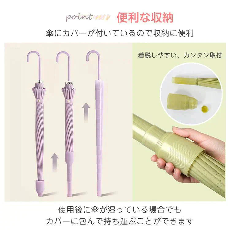 スライドケース長傘 「グレー」 晴雨両用 16本骨 撥水カバー付き 耐強風 撥水 梅雨対策 メンズ レディース おしゃれ ジャンプ 便利 機能 車 電車 プレゼント