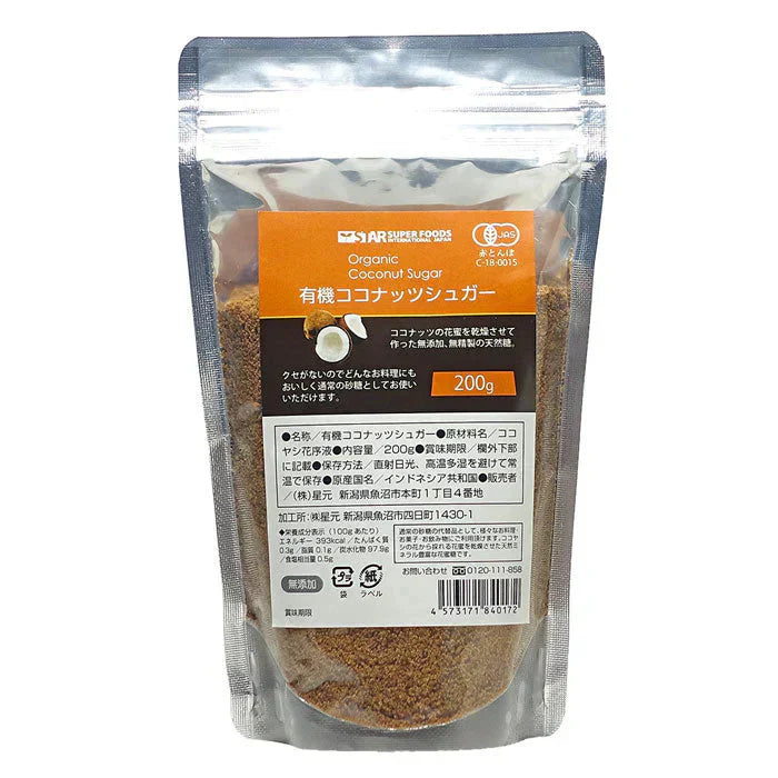 【低GI】ダイエット&健康に◎ オーガニック 有機JAS ココナッツシュガー 200g / 白砂糖 羅漢果 ラカンカ エリスリトール の代わりに 送料無料