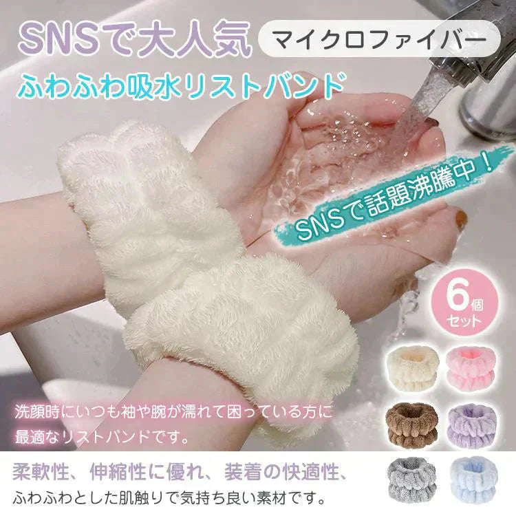 吸水リストバンド 「アイボリー」 6個入 リストバンド アームバンド 手首バンド 吸水ウォッシュバンド 袖濡れ防止 マイクロファイバー ふわふわ 柔らかい タオル 伸縮性