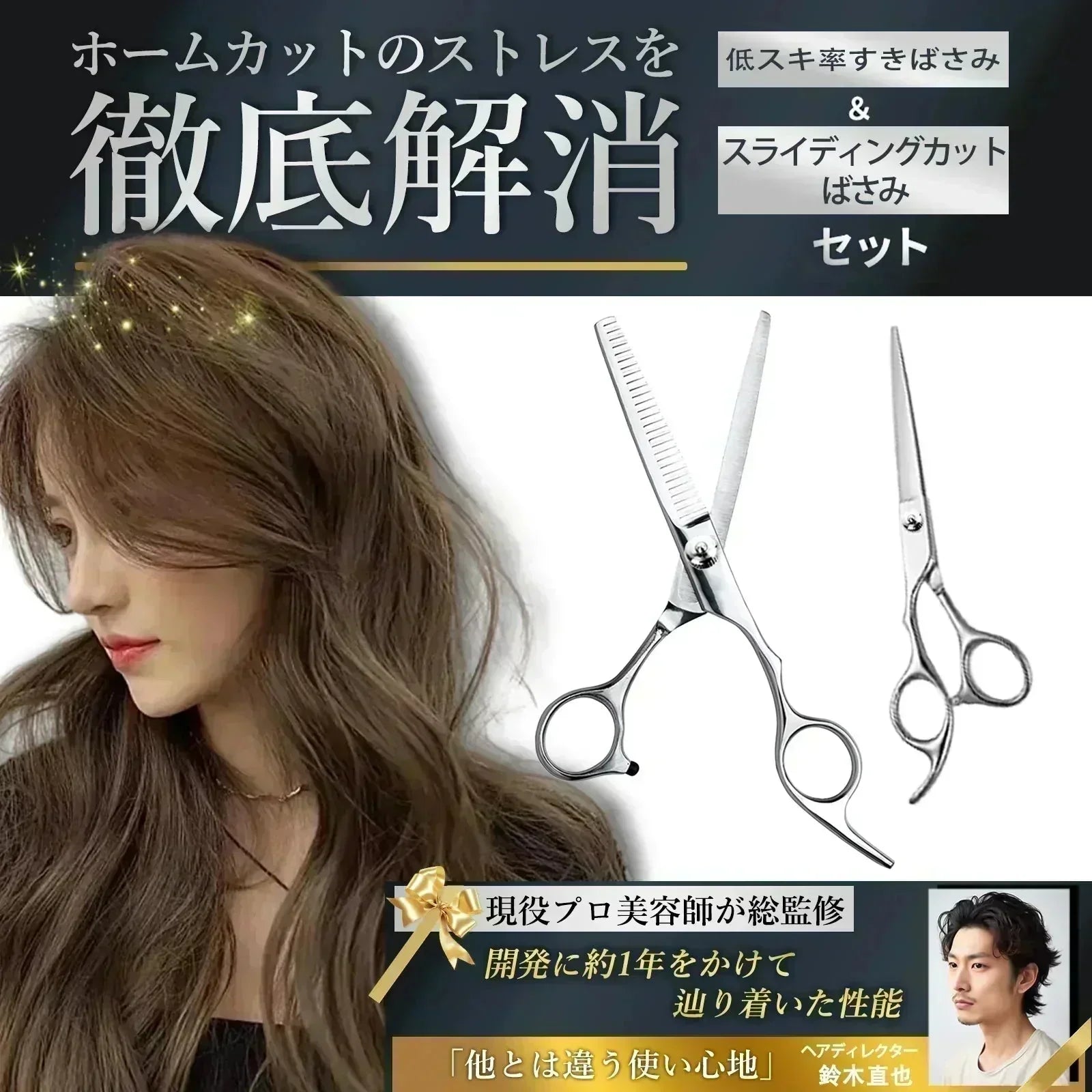 【プロ美容師総監修のセット】散髪ばさみ すきばさみ クリップ(2本) コーム すきコーム クリーニングクロス 美容師総監修のヘアカットマニュアル 収納・持ち運びに便利なレザー収納ケース の計8点をお届けします。Yumeのはさみセットは美容師歴15年の現役プロ美容師が総監修。80種類以上の調査を経て選んだプロが認める『抜群の切れ味』で『使いやすい』ハサミです。初心者の方に安心して使い続けてもらえるようセット内容にもこだわりました。