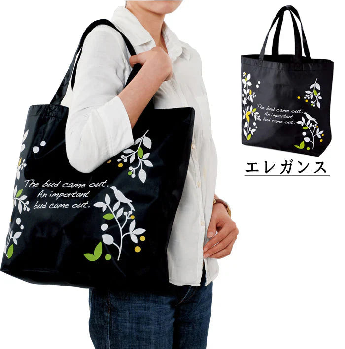 エコバッグ エレガンス 黒 ◆ サブバッグ 買い物 コンビニ レジ袋 エコグッズ コンパクト ワンコイン ポイント消費 アウトドア レジャー キャンプ GW