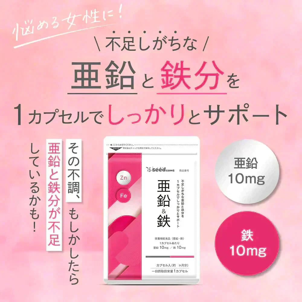 栄養機能食品 亜鉛&鉄 ≪約1ヶ月分≫ 1カプセルで亜鉛10mg 鉄分10mg 同時補給 ミネラル サプリ 鉄分【カウシェファーム収穫対象商品】