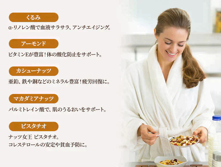 配合比率 ・生くるみ約36% ・素焼きアーモンド約32% ・素焼きカシューナッツ約32%