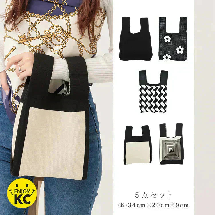 【5点セット】SNS大人気 ニットマルシェバッグ レディース 小さめ ニットバッグ 韓国 ミニバッグ ハンドバッグ トートバッグ おしゃれ