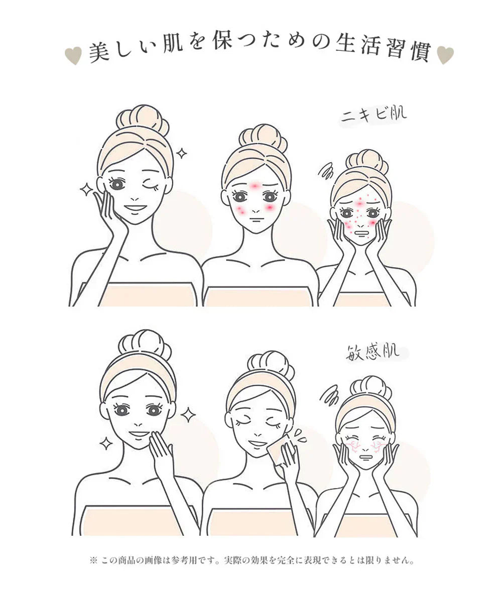 メイク落とし、全身清あ拭、手拭き、日常の食べこぼしや、掃除にも利用いただけます。