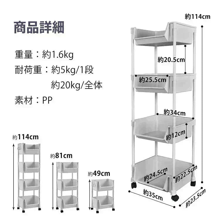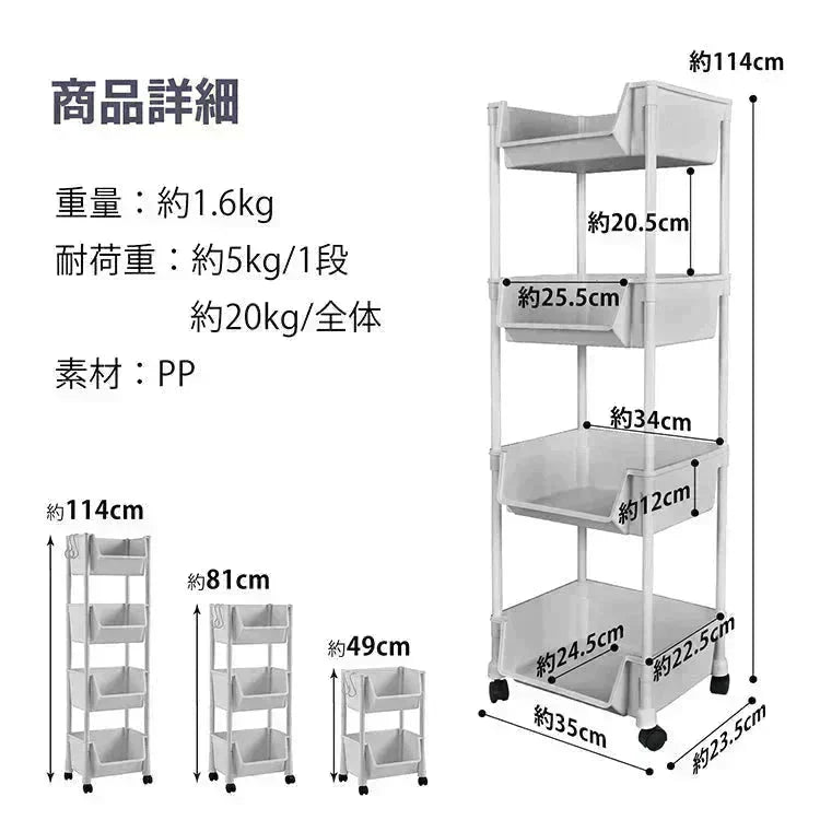 キッチンワゴン 「アイボリー」 収納棚 収納ワゴン 収納ラック 本棚 おしゃれ キャスター付き 組立簡単 収納カート 小物 台所 洗面所 軽量 組替可能 4段