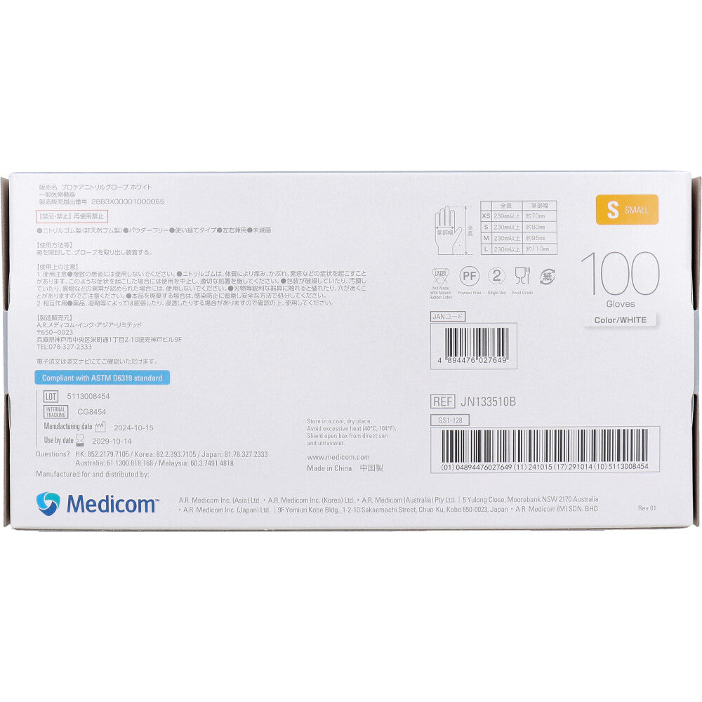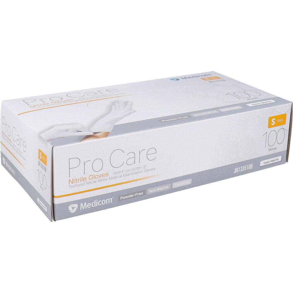 メディコム プロケア ニトリルグローブ ニトリルゴム製 パウダーフリー ホワイト Sサイズ 100枚入り X4箱
