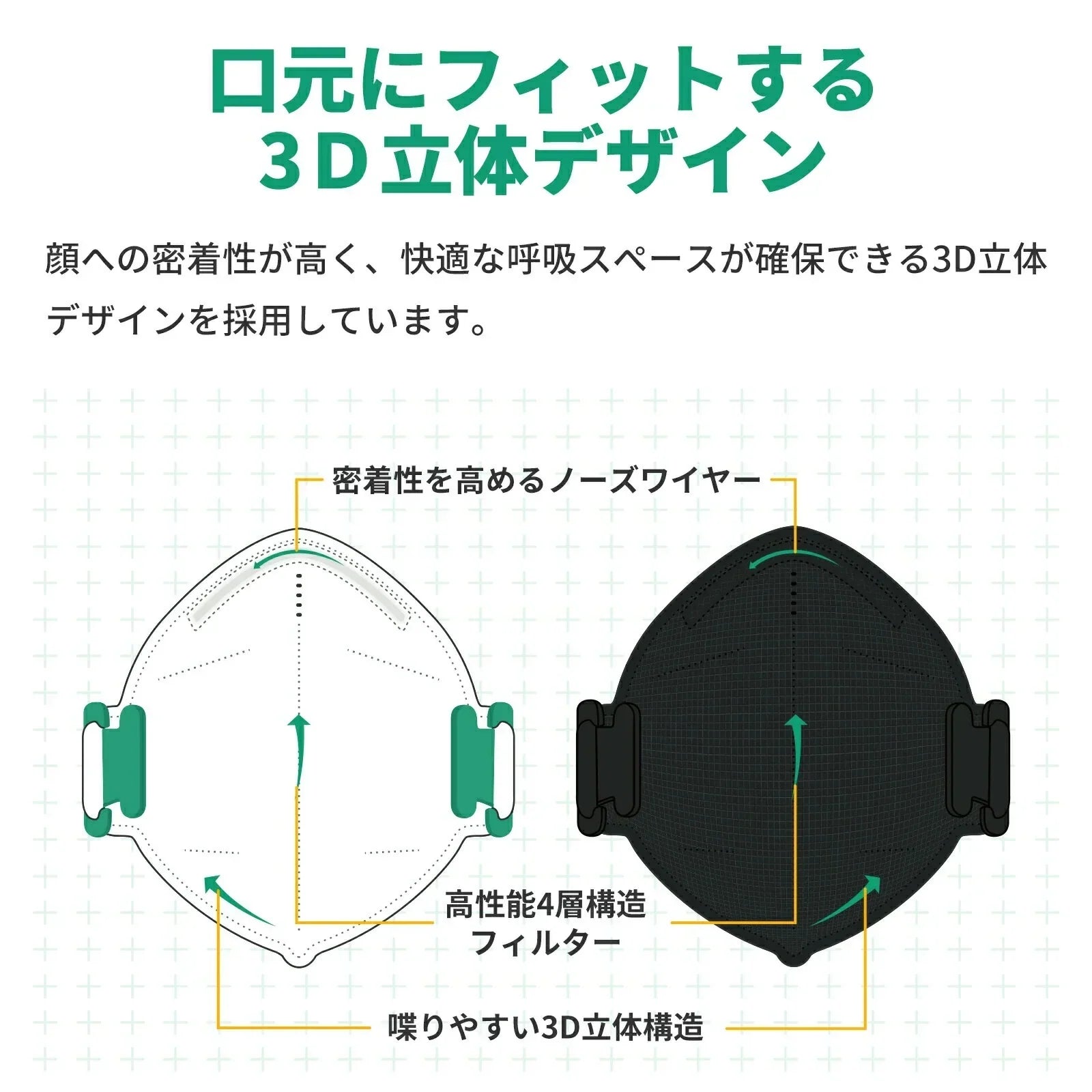 着用者の肺への病原体の進入を防ぐことができるのです。