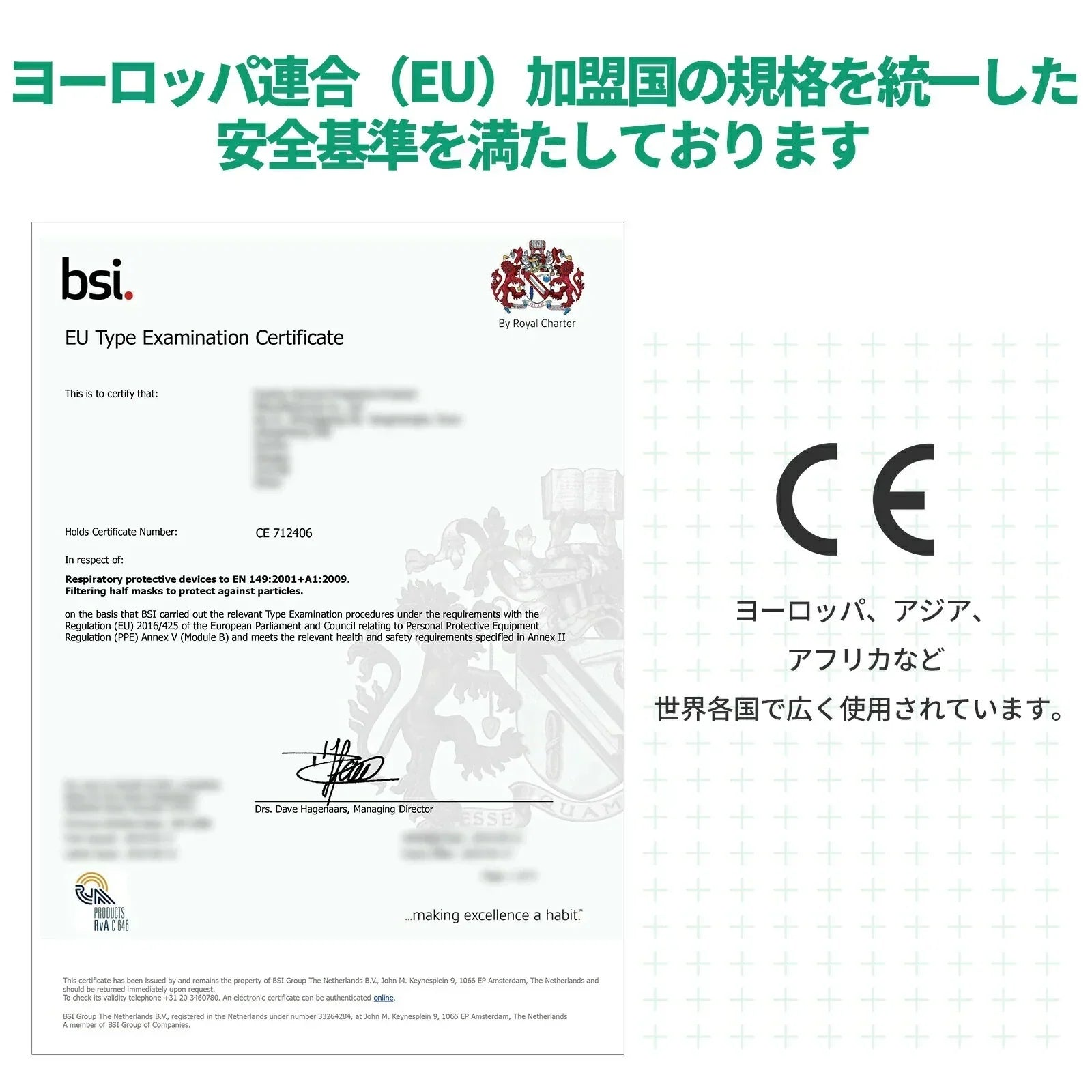 ヨーロッパ連合(EU)加盟国の規格を統一した安全基準を満たしております。