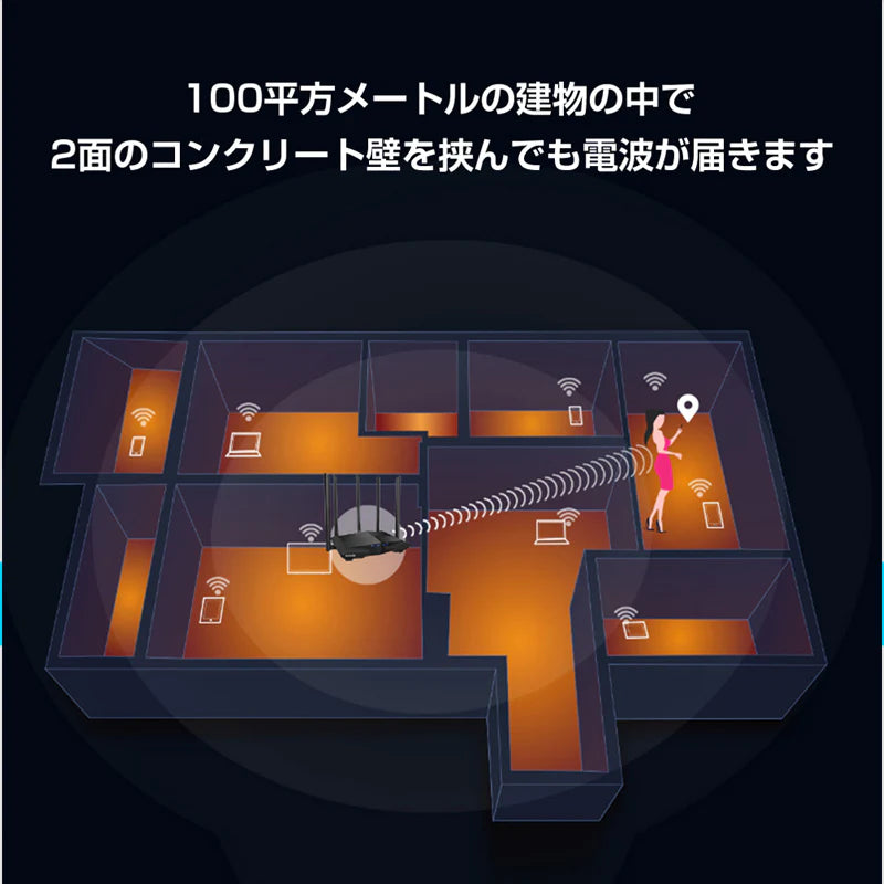 2階建てや一戸建てでも電波が隅々まで届きます。中継機としても使えます。